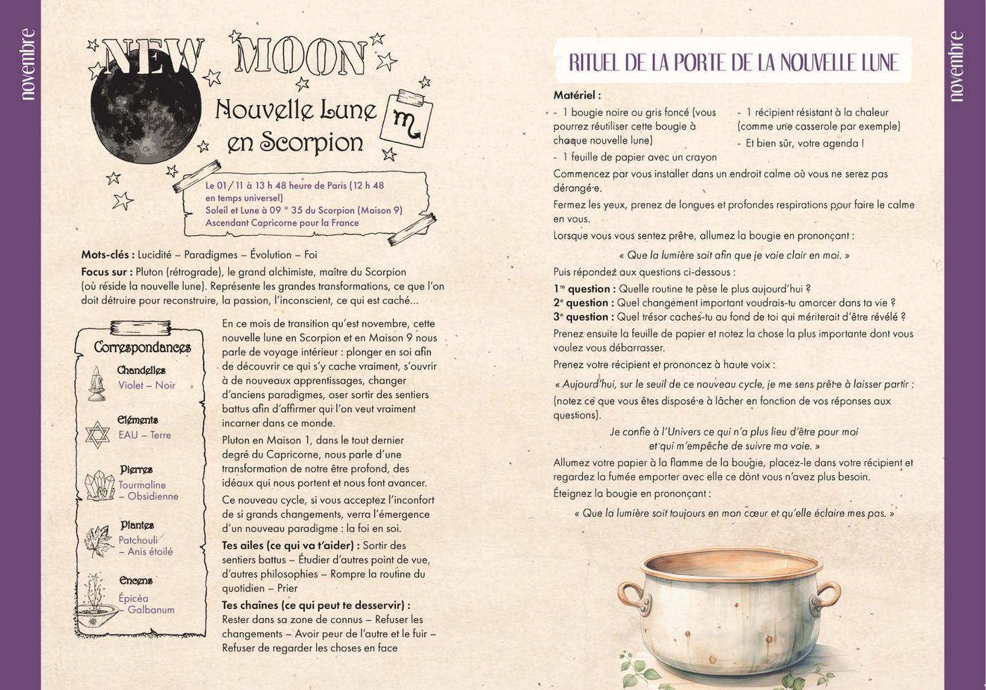 Et si vous laissiez la magie vous guider ? La magie est partout : dans la nature, dans nos campagnes et en chacun de nous. Pourquoi pas dans votre quotidien aussi ? Quoi de mieux que cet agenda-grimoire pour organiser votre année sorcière ! Vous y découvrirez, en plus des classiques semainiers, les phases lunaires, des recettes de cuisine magique, des rituels… Tout pour planifier vos journées au rythme des saisons et créer votre propre univers magique, un univers unique et personnel. Cette année encore, Véronique, alias Parole de Sorcière, vous aide à organiser votre quotidien de sorcière grâce à ses conseils et astuces : des petits grains de magie à semer partout dans votre vie. Elle vous emmène cette fois-ci à la rencontre de la magie sylvestre pour une année au plus proche de la nature et de nos forêts ! Agenda de septembre 2024 à octobre 2025.