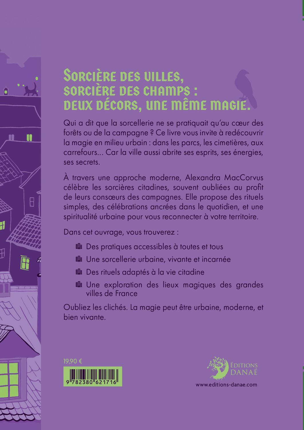 Qui a dit que la sorcellerie ne se pratiquait qu’au cœur des forêts ou de la campagne ? Ce livre vous invite à redécouvrir la magie en milieu urbain : dans les parcs, les cimetières, aux carrefours… Car la ville aussi abrite ses esprits, ses énergies, ses secrets. À travers une approche moderne, Alexandra MacCorvus célèbre les sorcières citadines, souvent oubliées au profit de leurs consœurs des campagnes. Elle propose des rituels simples, des célébrations ancrées dans le quotidien, et une spiritualité urbaine pour vous reconnecter à votre territoire. Dans cet ouvrage, vous trouverez : des pratiques accessibles à toutes et tous ; une sorcellerie urbaine, vivante et incarnée ; des rituels adaptés à la vie citadine ; une exploration des lieux magiques des grandes villes de France. Oubliez les clichés. La magie peut être urbaine, moderne, et bien vivante.