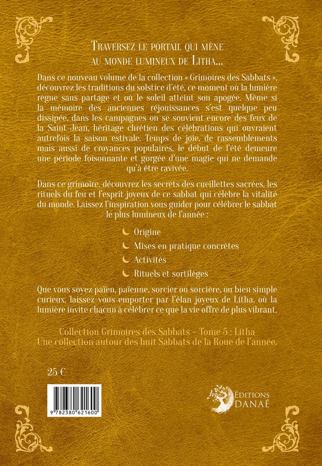 Dans ce nouveau volume de la collection « Grimoires des Sabbats », découvrez les traditions du solstice d’été, ce moment où la lumière règne sans partage et où le soleil atteint son apogée. Même si la mémoire des anciennes réjouissances s’est quelque peu dissipée, dans les campagnes on se souvient encore des feux de la Saint-Jean, héritage chrétien des célébrations qui ouvraient autrefois la saison estivale. Temps de joie, de rassemblements mais aussi de croyances populaires, le début de l’été demeure une période foisonnante et gorgée d’une magie qui ne demande qu’à être ravivée. Dans ce grimoire, découvrez les secrets des cueillettes sacrées, les rituels du feu et l’esprit joyeux de ce sabbat qui célèbre la vitalité du monde. Laissez l’inspiration vous guider pour célébrer le sabbat le plus lumineux de l’année : origine ; mises en pratique concrètes ; activités ; rituels et sortilèges. Que vous soyez païen, païenne, sorcier ou sorcière, ou bien simple curieux, laissez-vous emporter par l’élan joyeux de Litha, où la lumière invite chacun à célébrer ce que la vie offre de plus vibrant.
